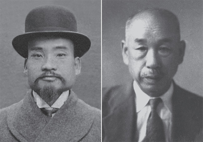 동화약품 창업자 민병호 선생의 아들인 민강 사장(왼쪽)과 그 뒤를 이은 윤창식 사장. <동화약품>